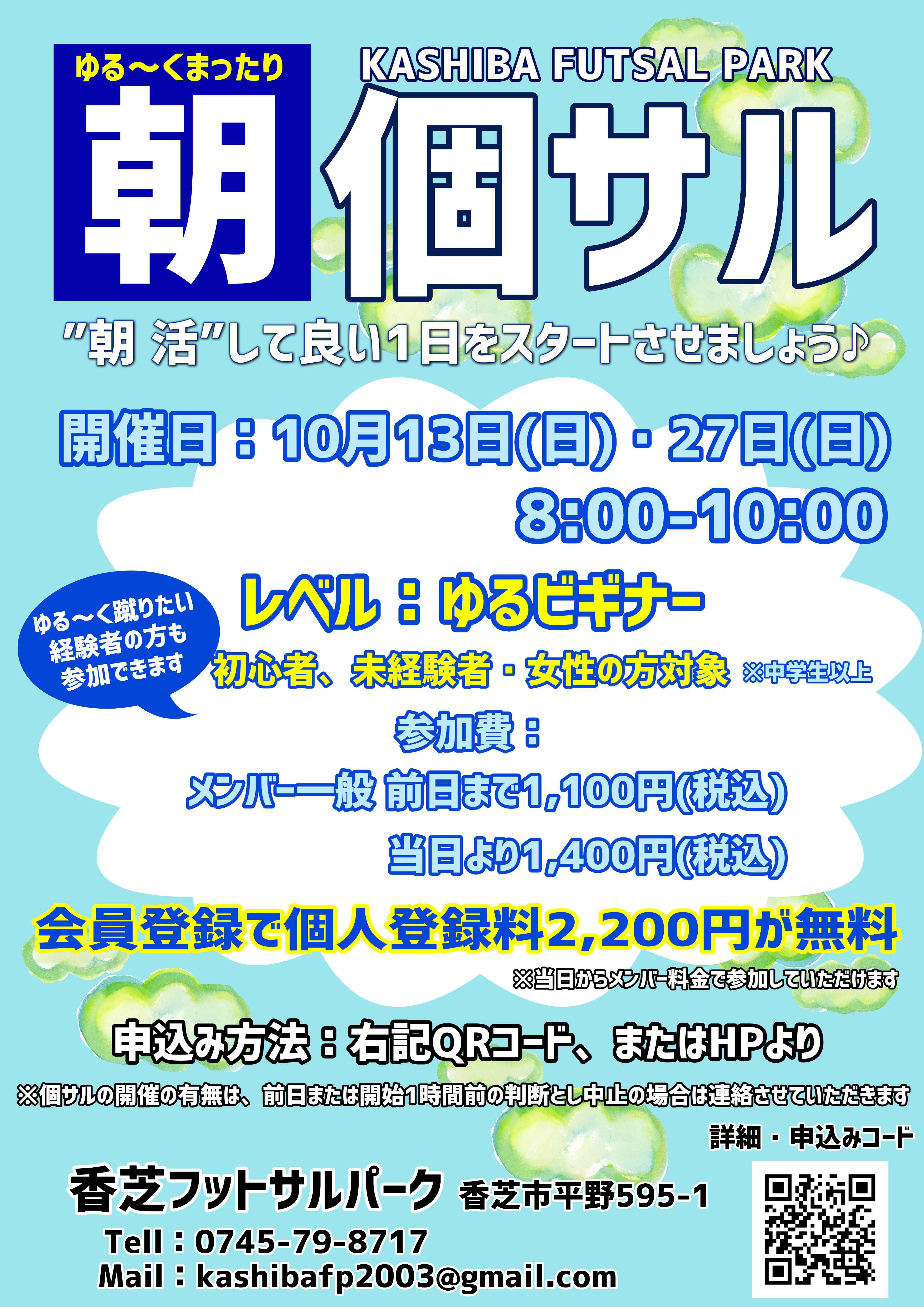 土曜日の午前開催ビギナーの方対象の個サルです!