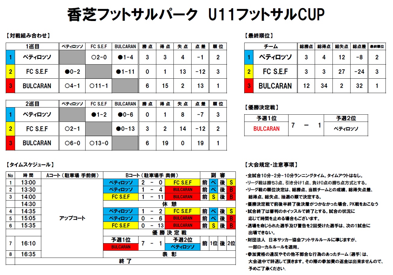 2026.3.22(日)U11フットサルCUP開催!!大会結果更新